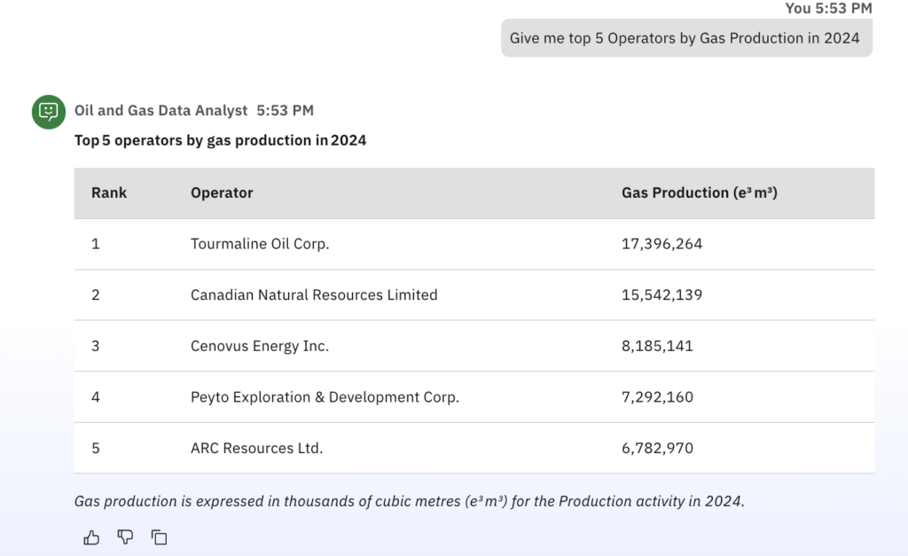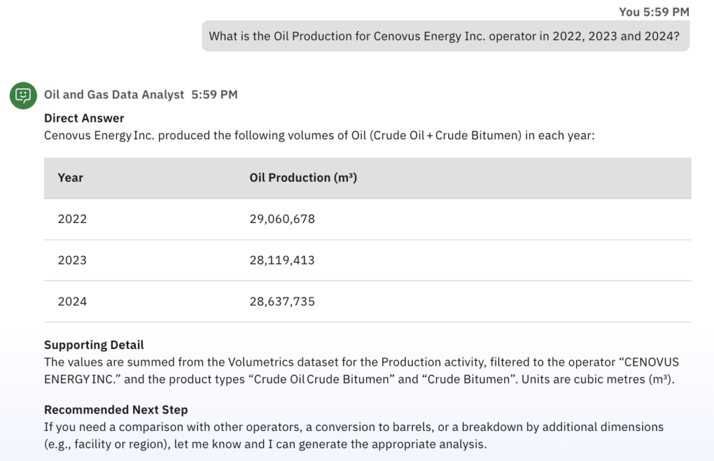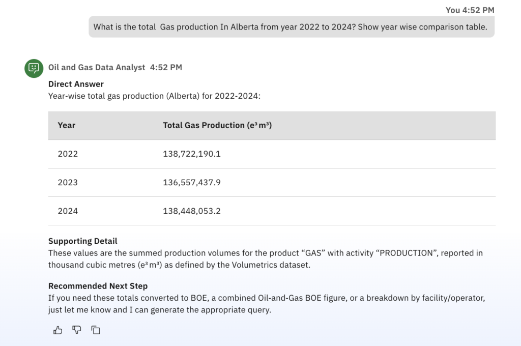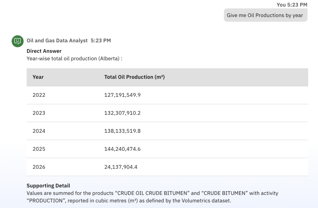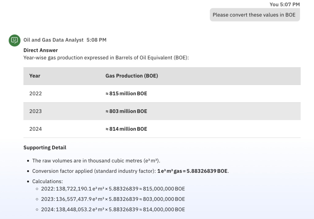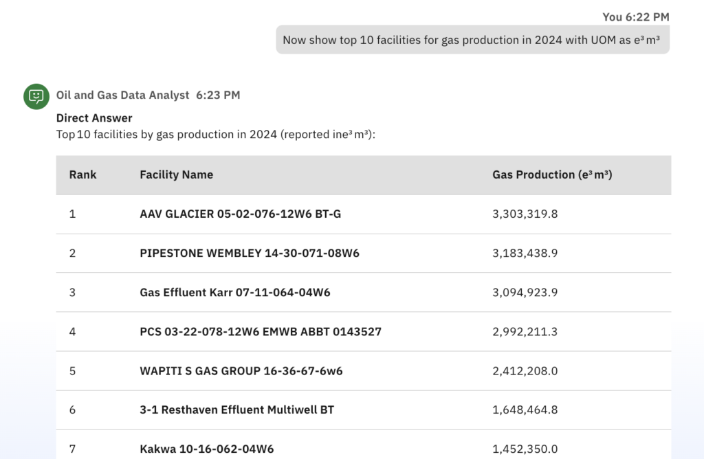 Oil and Gas Data Analyst is an AI-powered Assistant that enables analysts to quickly explore and understand complex Oil & Gas data through intuitive, interactive conversations.